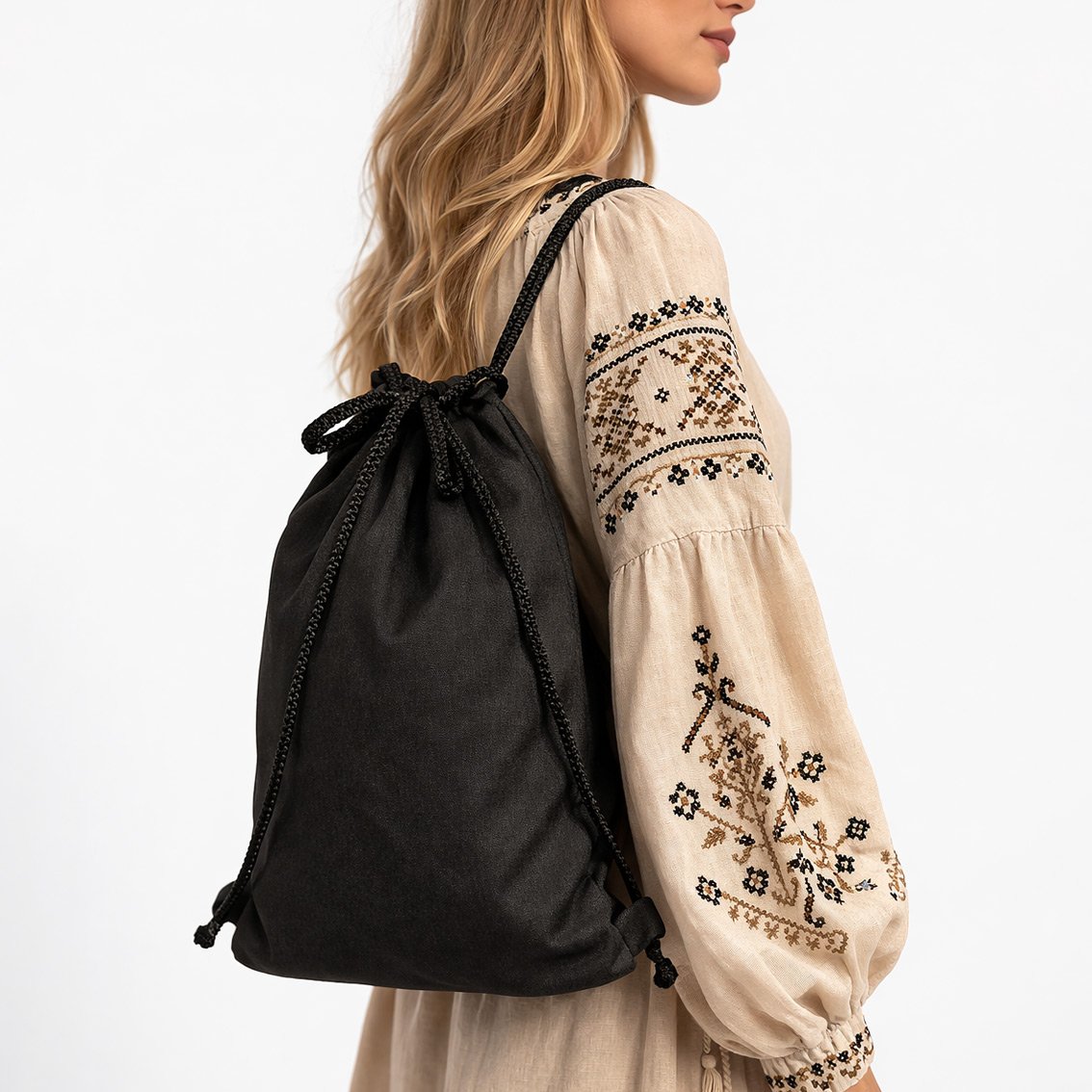 Еко-рюкзак-мішок чорний з саржі: Стильне та надійне рішення для активного міського життя