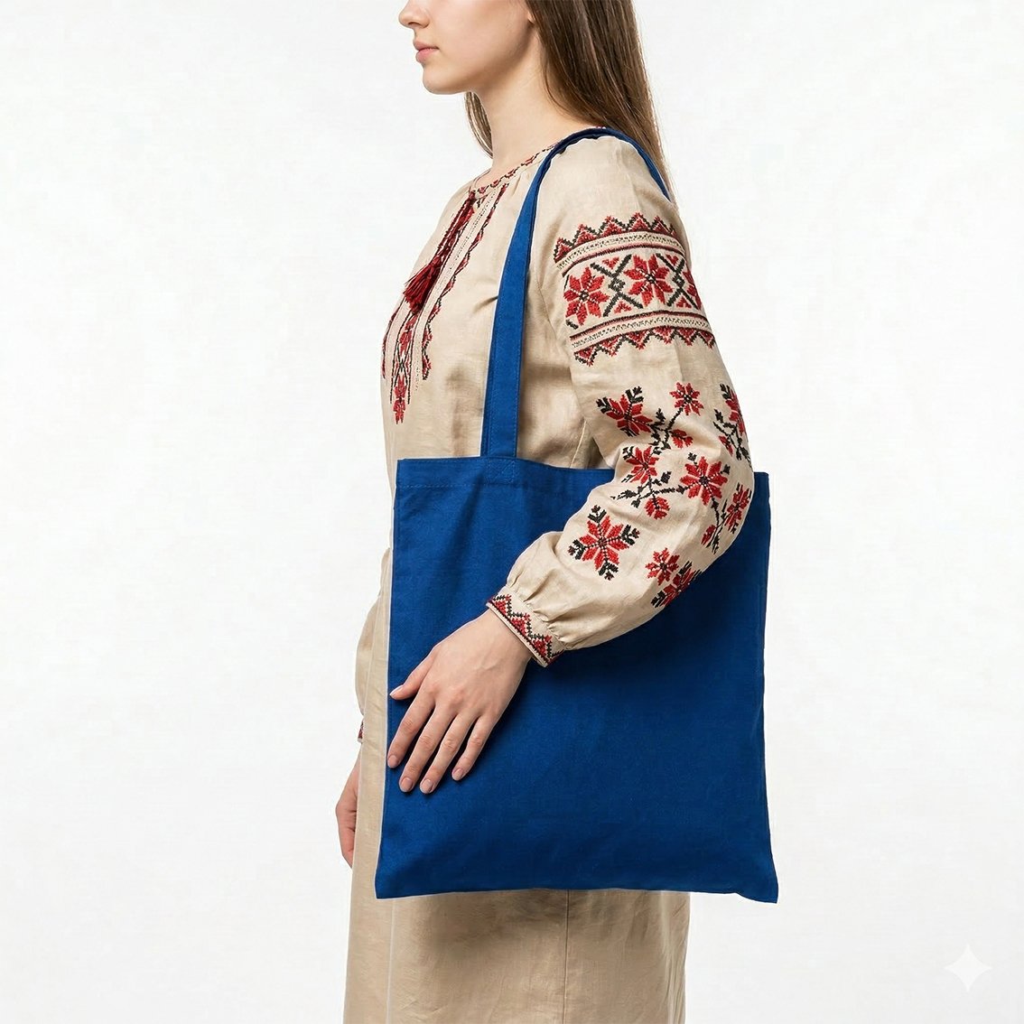 Синя сумка-шопер із саржі: Преміальна міцність, яскравий стиль та бездоганна екологічність