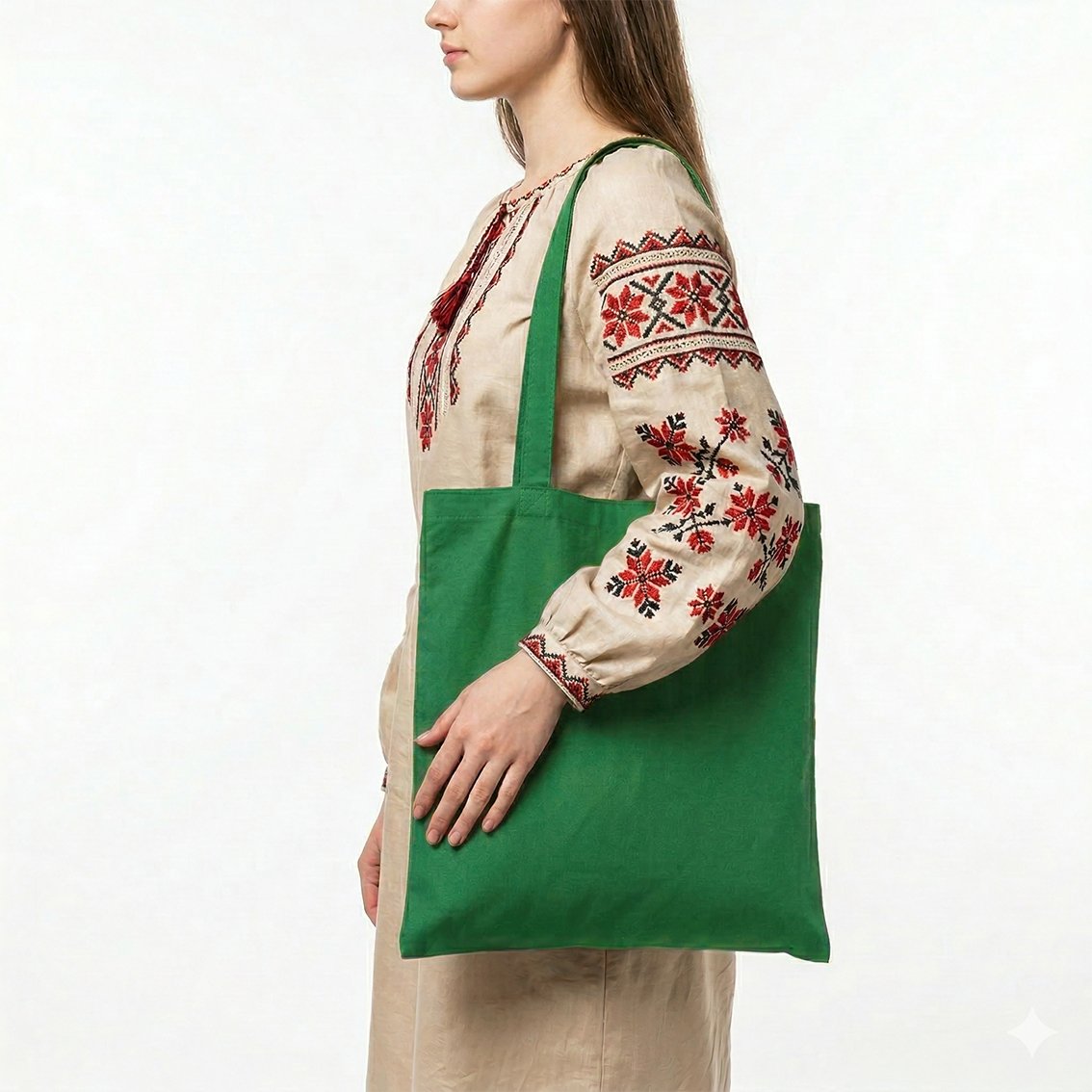 Зелена сумка-шопер із саржі: Преміальна міцність, яскравий стиль та бездоганна екологічність
