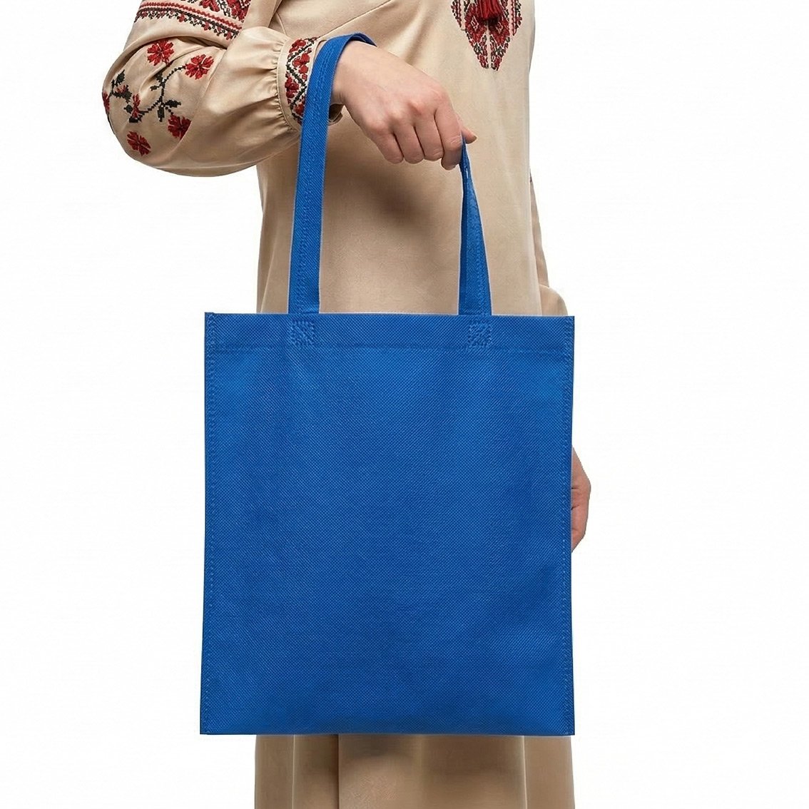 Довговічність: На відміну від паперових пакетів, синя сумка зі спанбонду не рветься від гострих кутів коробок і не втрачає колір на сонці.