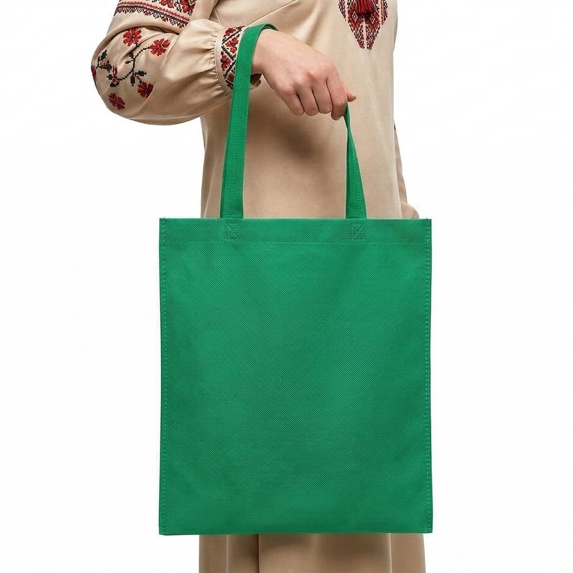 Довговічність: На відміну від паперових пакетів, Зеленасумка зі спанбонду не рветься від гострих кутів коробок і не втрачає колір на сонці.