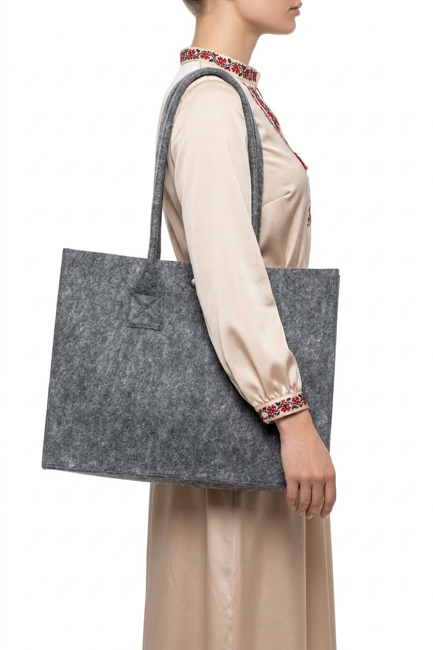 Захисні властивості: Товстий шар фетру діє як природний амортизатор. Це робить сумку ідеальною для перенесення гаджетів, крихких подарунків або важливих документів, захищаючи їх від випадкових ударів та перепадів температур.